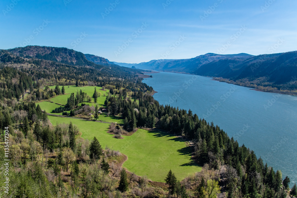 Summer Day in Columbia River Gorge Washington with Columbia River