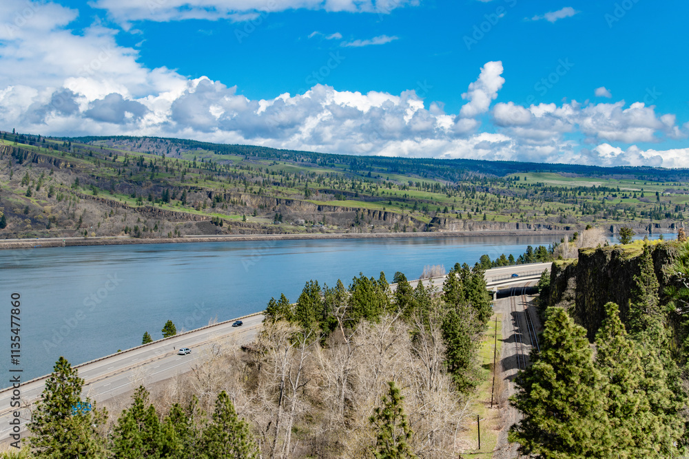 Highway Along Columbia River Gorge in Mosier Oregon