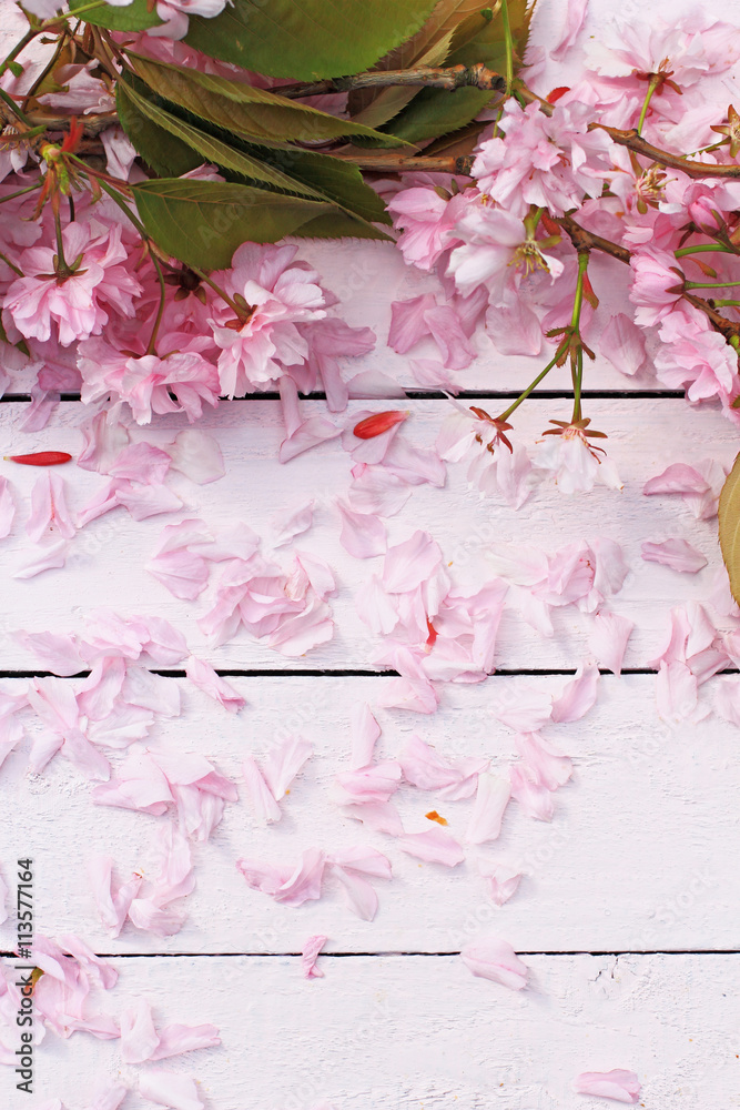 Beautiful, Spring floral background with Japanese cherry blooming flowers