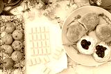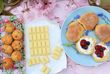 Romantic fresh breakfast with scottish scones and white chocolate in the garden