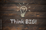 the word think big and light bulb drawn on a wooden board,busine