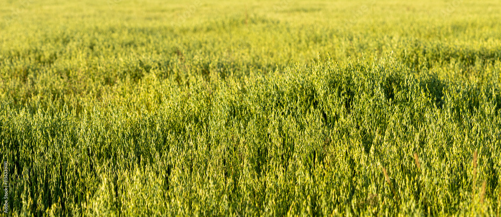 Oats Field Background. Panorama, Panoramic View