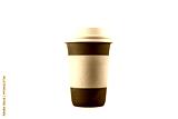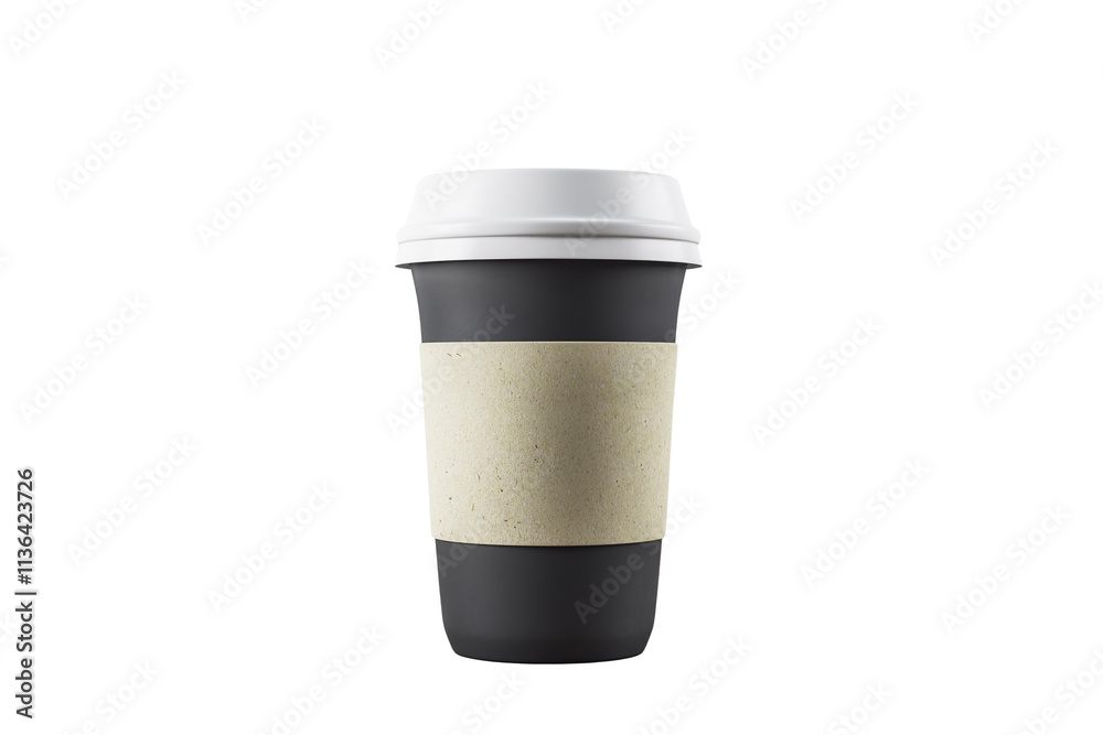 Black reusable coffee cup with a beige sleeve and white lid, isolated on a clean white background, concept of eco-friendly beverage containers. 3D Rendering.
