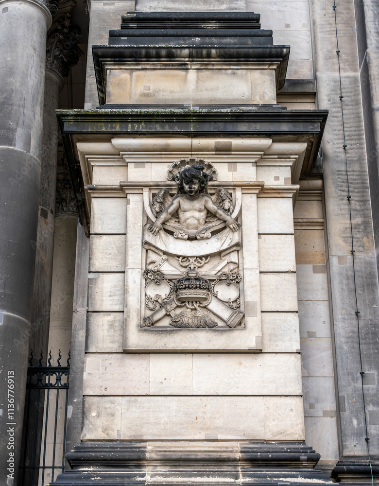 Evangekische Bildnisse und Reliefs an der Fassade des Berlioner Dom, Berline, Deutschland
