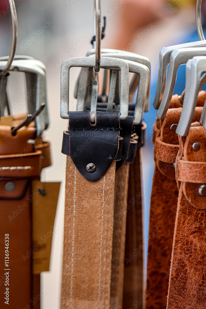 Ledergürtel hängen am Ständer.