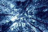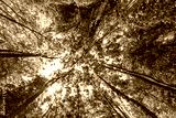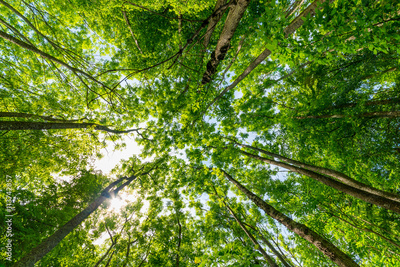 Sonnenstrahlen brechen durch Baumkronen im Wald