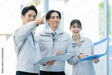 点検する作業服のビジネスマン