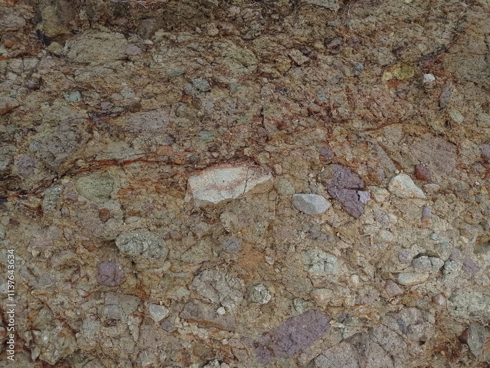 Photo of the exposed ground surface due to excavator dredging. The texture of the soil mixed with rocks, layered, indicates the existence of geological activity.