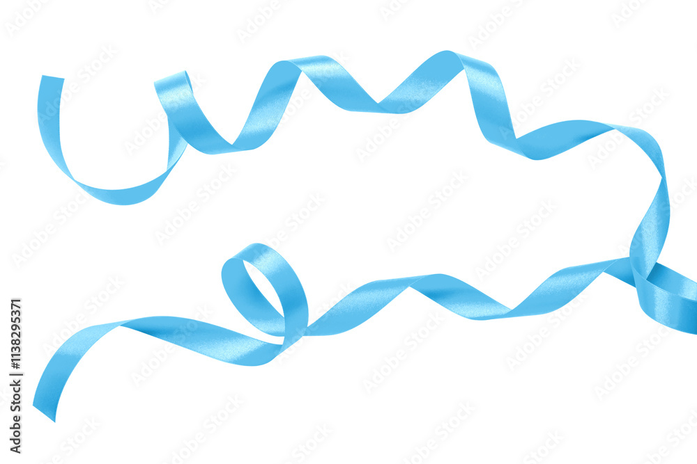 Light blue satin ribbon png isolated on transparent background, bow color curly scroll set for holiday, birthday, wedding card confetti design decoration