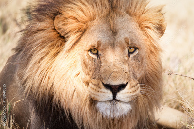 African lion in savannah in Zambia