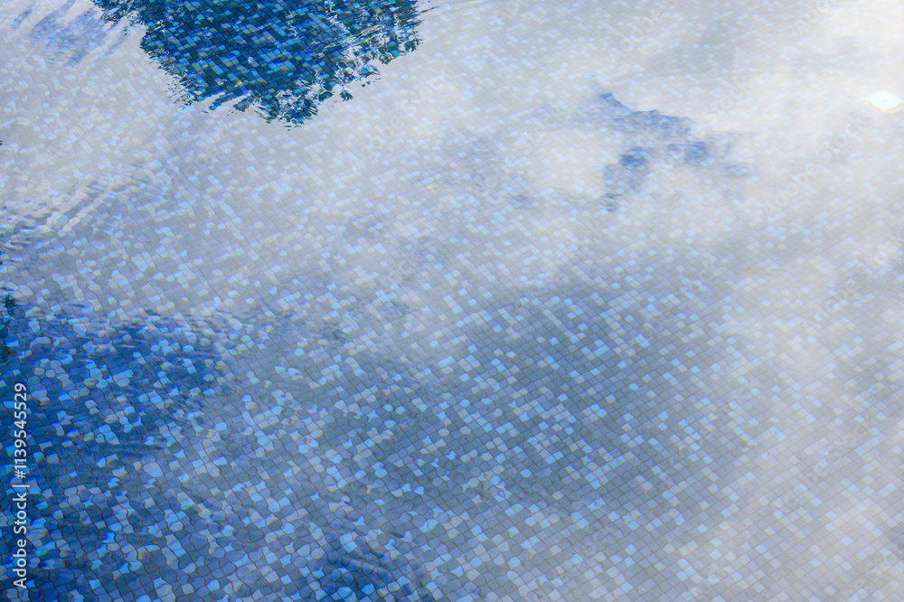 Swimming pool water surface and ripple wave with blue mosaic tiles