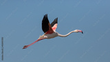 Flying Greater flamingo (Phoenicopterus roseus), Camargue, France