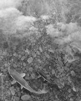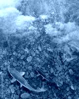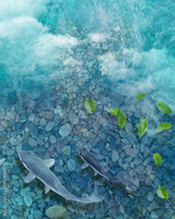 Lake background with fish koi. Top view underwater. High resolution for 3d floor print