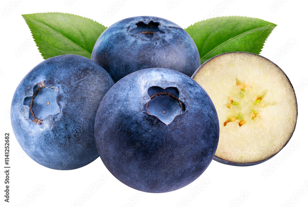 Fresh Blueberry fruit isolated on white background, Fresh Blueberry on White Background PNG File.