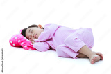 Full body. Healthy children concept. Asian girl sleeping peacefully.