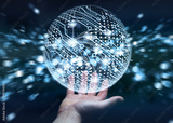 Businessman using data network with his fingers