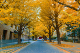 Colorful Autumn and Row of Ginkgo Trees at Tokyo University