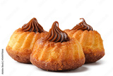Delicious mini bundt cakes topped with chocolate frosting on a white background