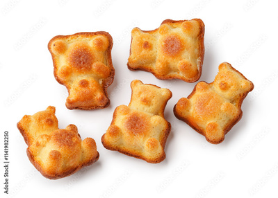 Sweet bear-shaped treats on a white background, perfect for parties and snacks, made with fluffy cake batter and a golden crust