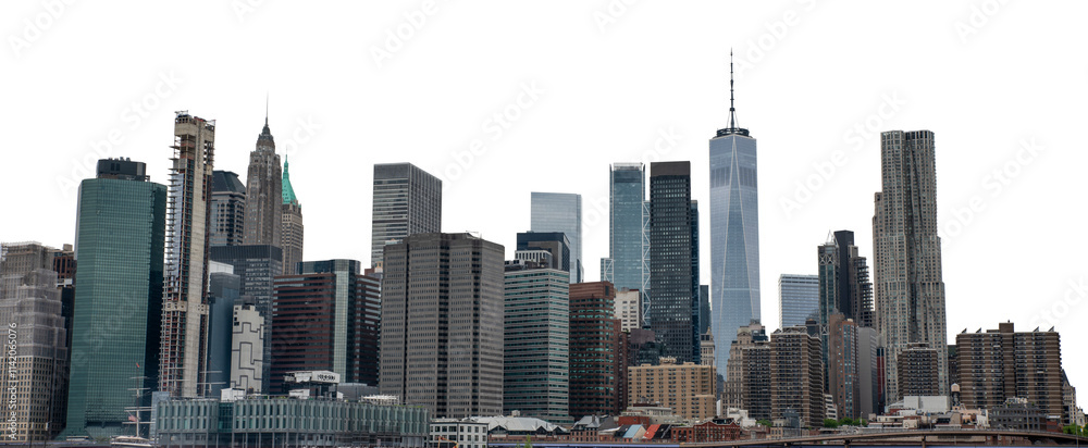 Panoramic view of World Trade Center and Manhattan skyline building with no backgroung PNG