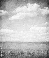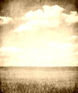 grunge image of green field and blue sky