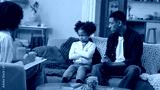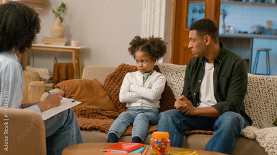 African American offended child daughter little girl problem difficult relationships family misunderstanding quarrel conflict father parent man session psychologist specialist therapy negative preteen