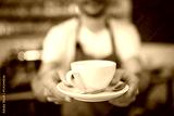Close-up of barista serving coffee at cafeteria