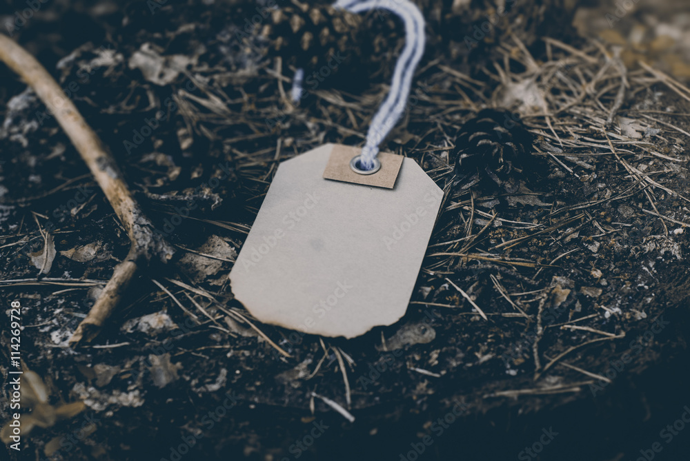 Mock-up label in the forest. Template of the labels in the forest. Brutal choice.