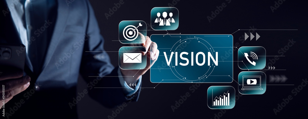 Vision with businessman holding a tablet