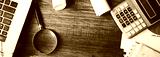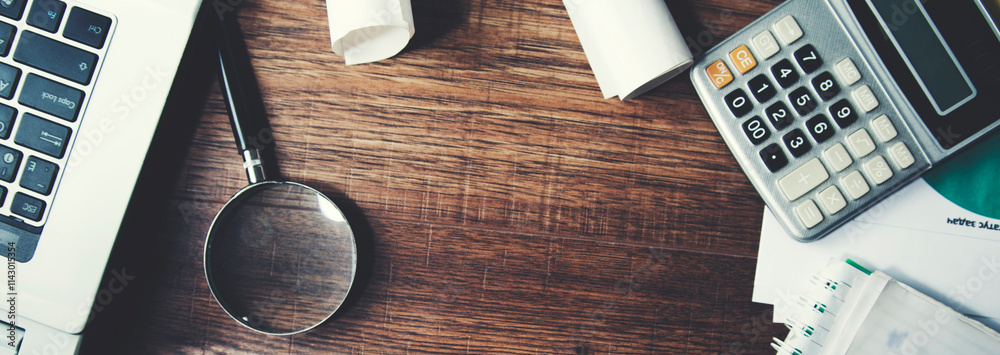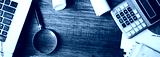 keyboard with document and calculator on table