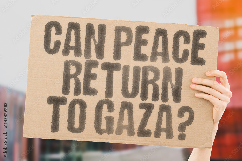 "Can peace return to Gaza?" highlights a hopeful question amid conflict. Rebuilding. Hope. Humanity. Conflict. Justice. Diplomacy. Freedom