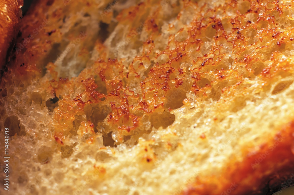 texture toast, fried fresh bread, close-up, shallow depth of fie