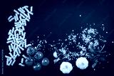 Food ingredients on black, chalkboard table. Photographed from above, top view.