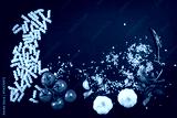 Food ingredients on black, chalkboard table. Photographed from above, top view.