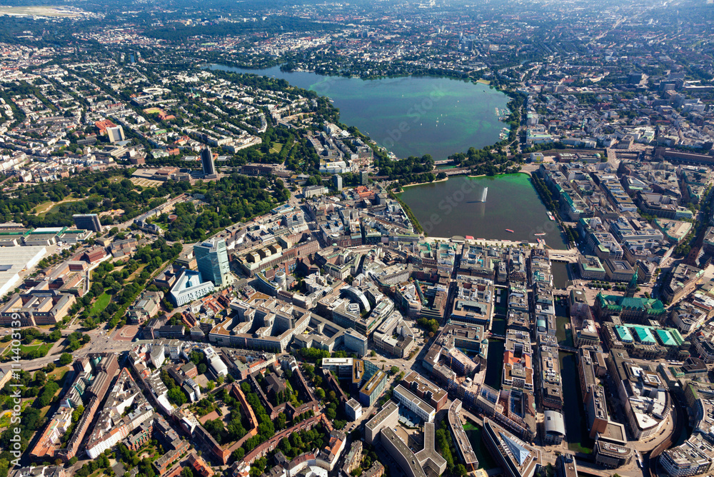 Aerial view of Hamburg with Alster lake
