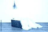 wicker basket'te beyaz pelüş halı
