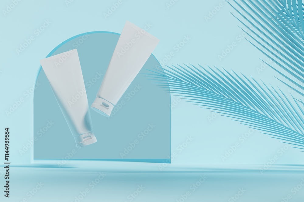 3d illustraion of cosmetic skin care beauty spa cream mockup, bathroom interior, medical healthcare treatment, fashion of makeup, bottle tube of packaging.