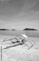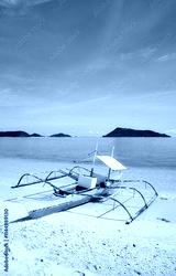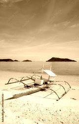 Bangka fishing boat on the beach of Inapupan Island in the Philippines.