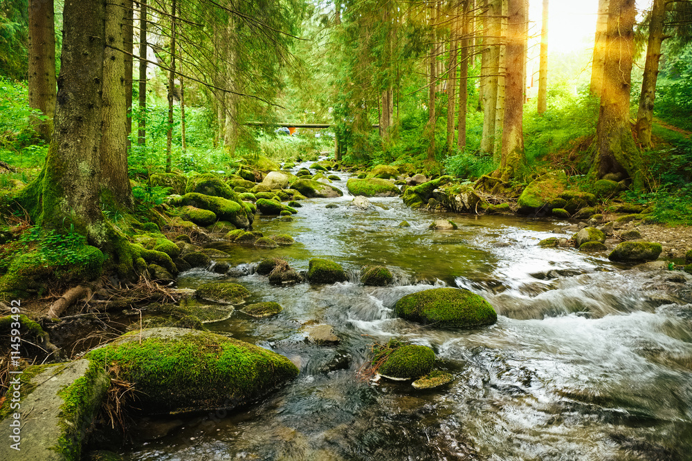 Flowing stream on the forest