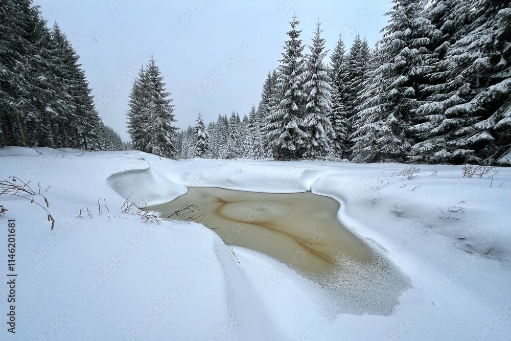 Beautiful European forest in winter, nestled in the picturesque Bohemian Forest, is a winter wonderland for skiing enthusiasts. With pristine slopes and stunning landscape views.