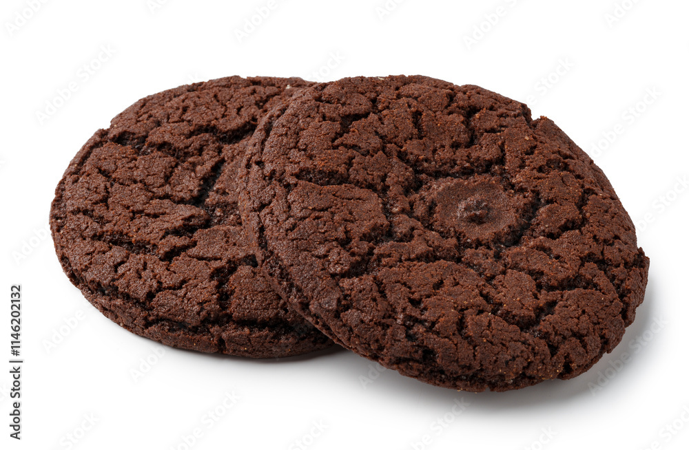 Soft chocolate cookies with a cracked texture on a white background, perfect for dessert or snack time