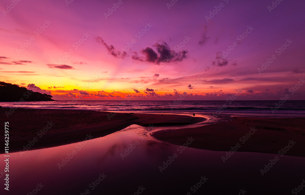 Aerial view sunset sky,Beautiful Light Sunset or sunrise over sea,Colorful scenery sunset sky, Amazing clouds and small waves in the ocean, Wonderful light cloud waves texture background