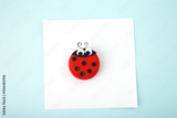 ideas for recycling plastic bottle caps, tutorial, handmade ladybug craft fun and educational projects for children. DIY summer activity for kids, top view, light blue background,