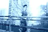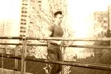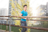 Sporty young man working out at early morning while run up the b