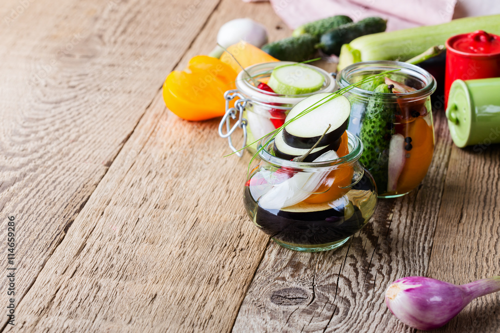 Homemade vegetables preserves. Preserved food concept