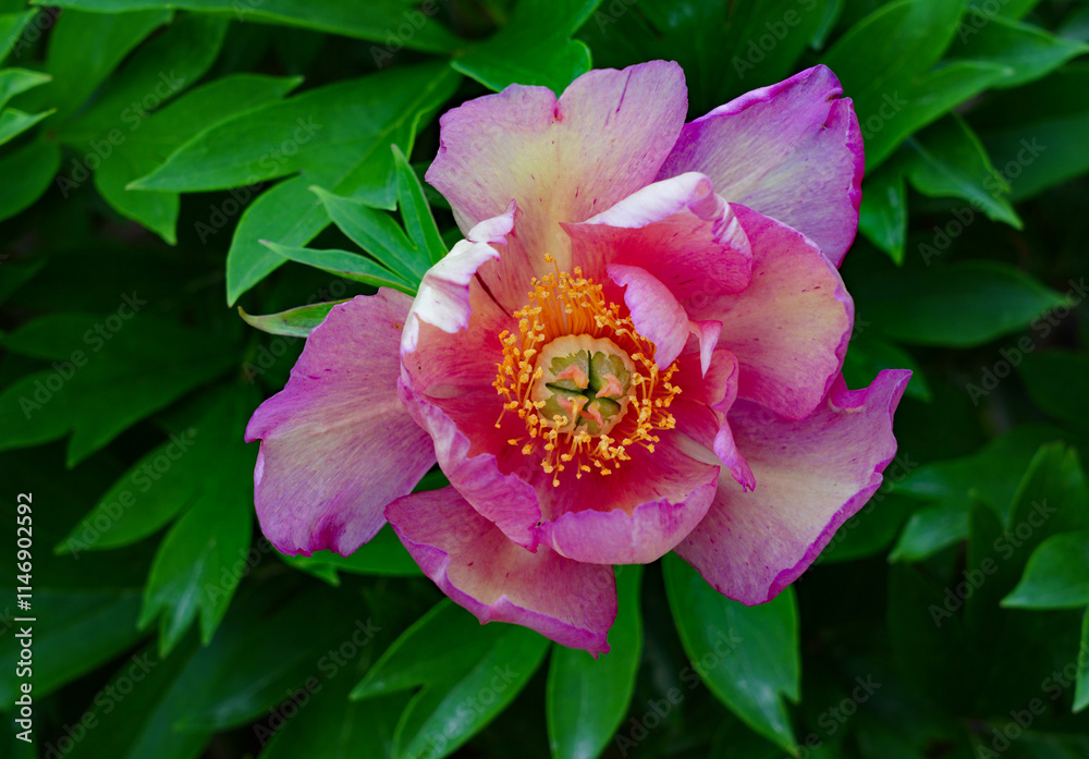Pink peony flowers growing in the garden in China in the spring