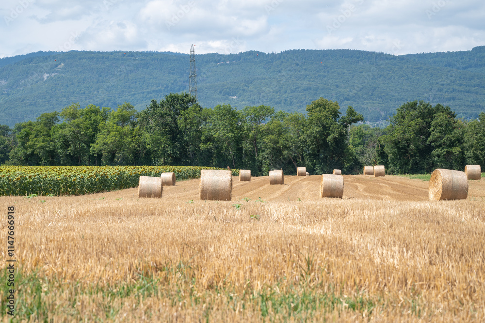 meules de paille dispersée sur un champ