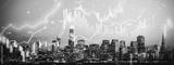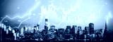 Cityscape of San Francisco with financial charts and graphs overlay representing real estate market trends and investment analysis. 3D Rendering