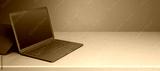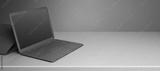 Modern metallic laptop with an open screen and keyboard on a clean textured surface, showcasing a blank display for mockup or branding. 3D Rendering