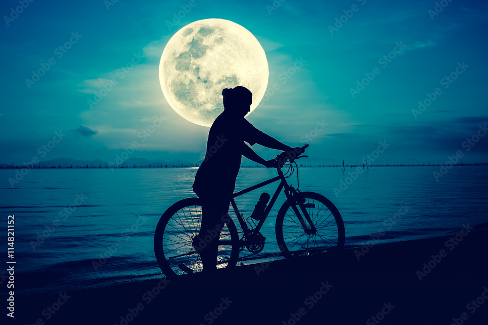 Silhouette of bicyclist enjoying the view at seaside. Outdoors.